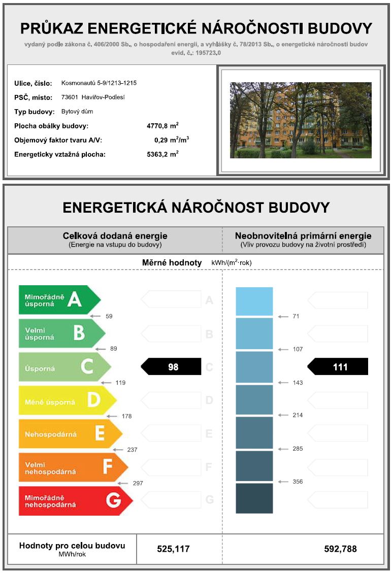 | Ukazatel ENB | 98 kWh/m2 za rok |